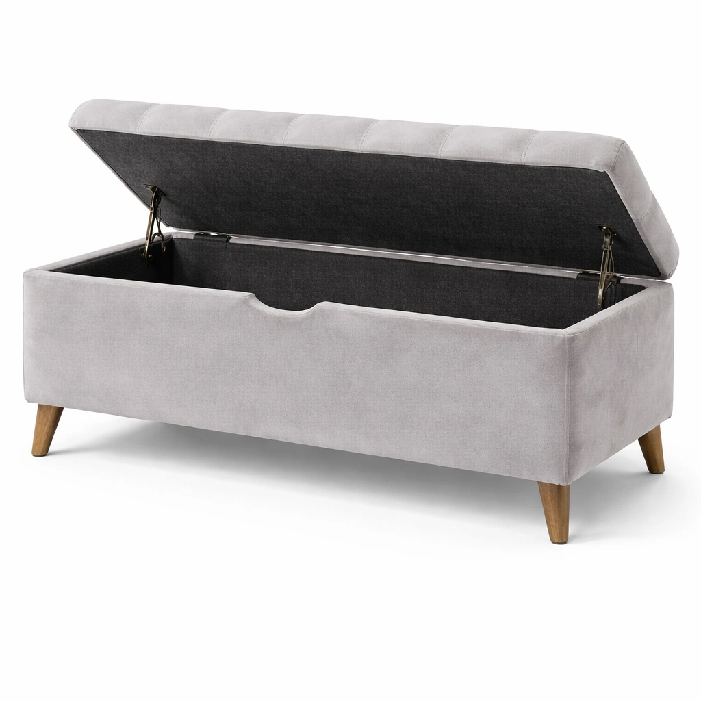 Banco con almacenamiento de madera tapizado en terciopelo gris 120x40x45 cm