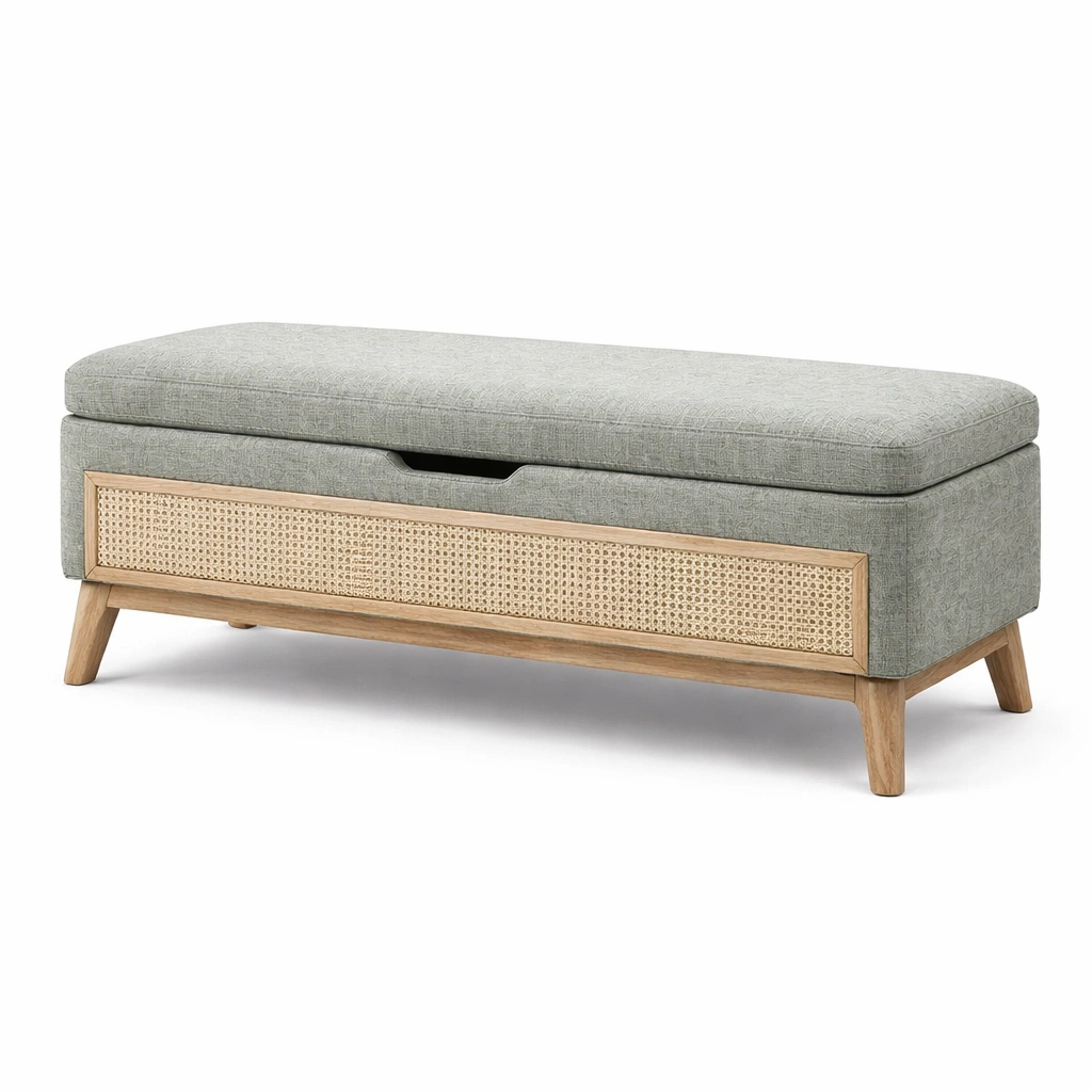 Banco con almacenamiento de madera y tela