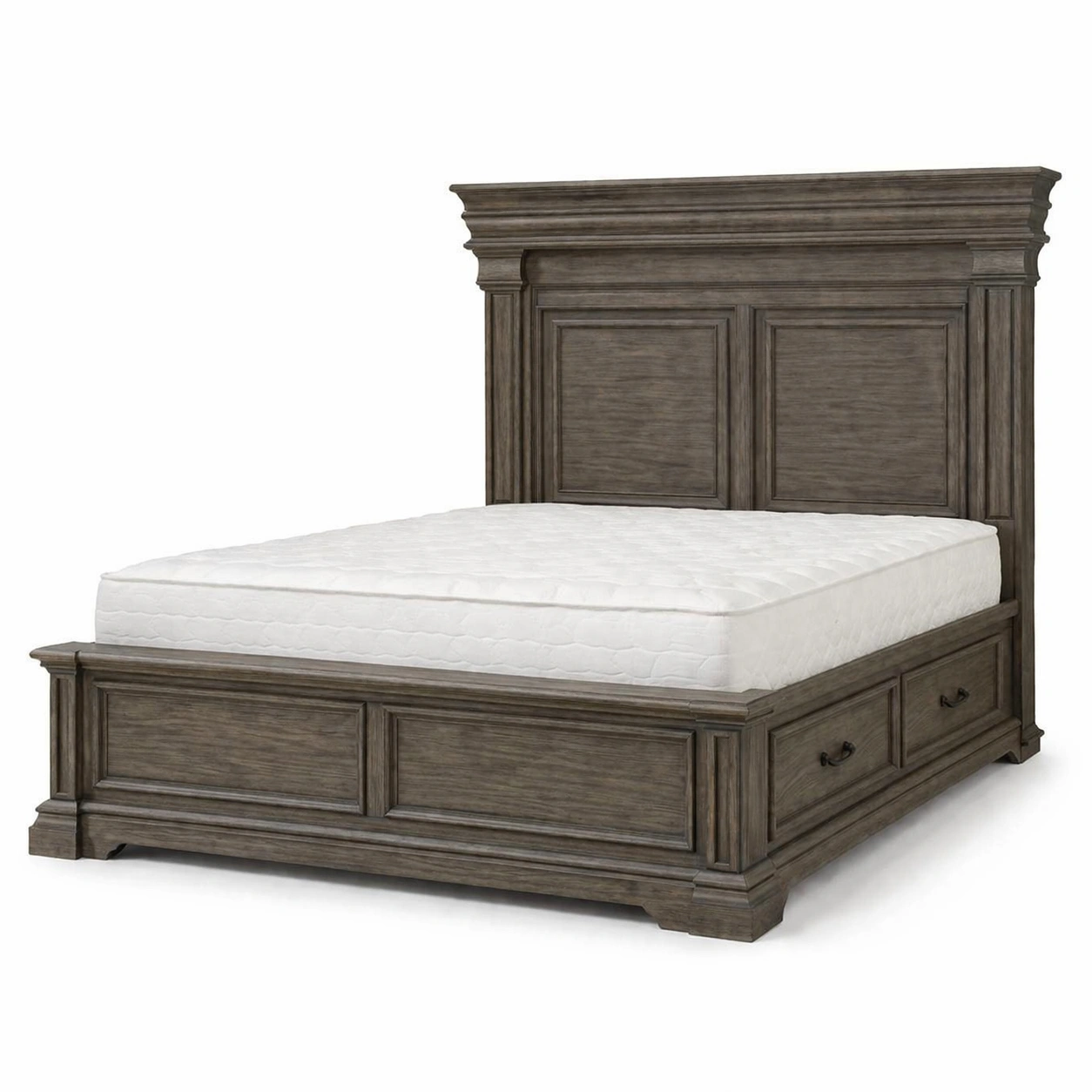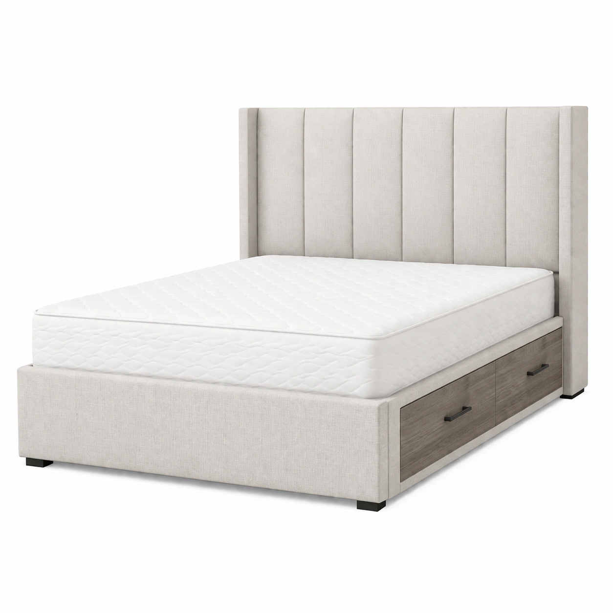 Cama con almacenamiento de madera con cabecero tapizado y cajones