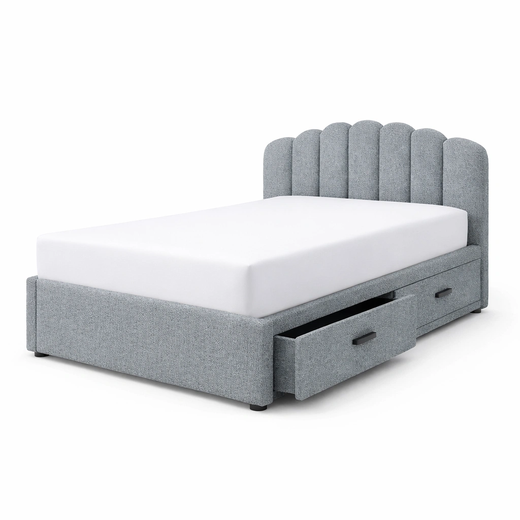 Cama con almacenamiento individual de madera contrachapada y tela gris con cajones